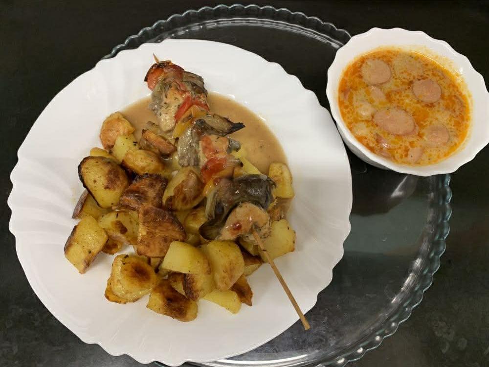 Navíc se od rána v kuchyni také „topilo v kotli“ a na talíři u oběda nechyběly čertovské speciality: Polévka z čertích ocásků (ale s láskou vařená pro děti) a taky Luciferovy berle (špízy) s pekelnými uhlíky (pečené brambory).