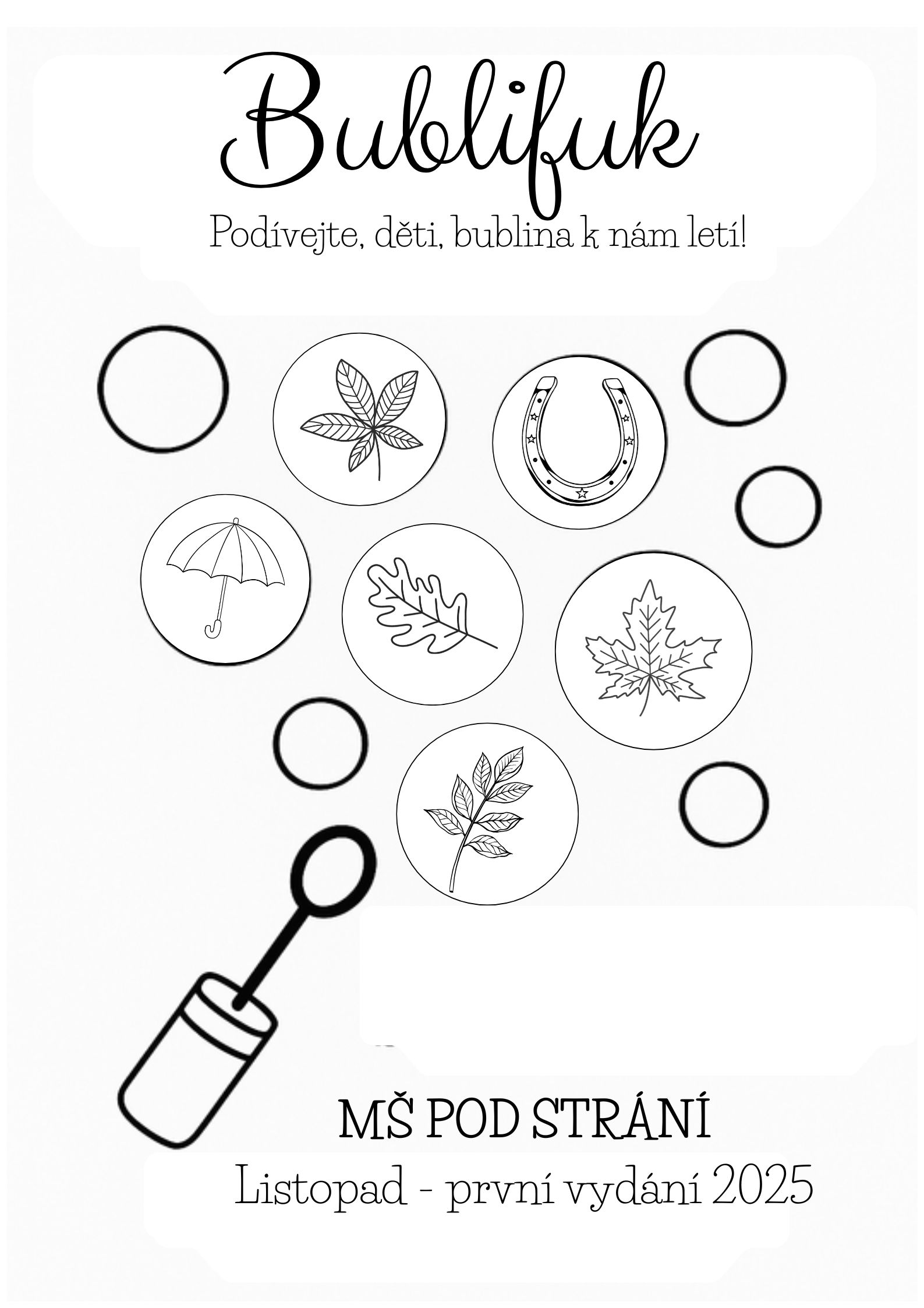 Milí rodiče, milé děti, do školky letí novinka! Od pondělí 10.11. bude ve třídách pro Vás nachystané první vydání školního časopisu BUBLIFUK. :) Pořídit si ho můžete u své paní učitelky ve třídě za symbolickou cenu 10 Kč. Věříme, že se Vám bude časopis líbit a že si jej s chutí přečtete.