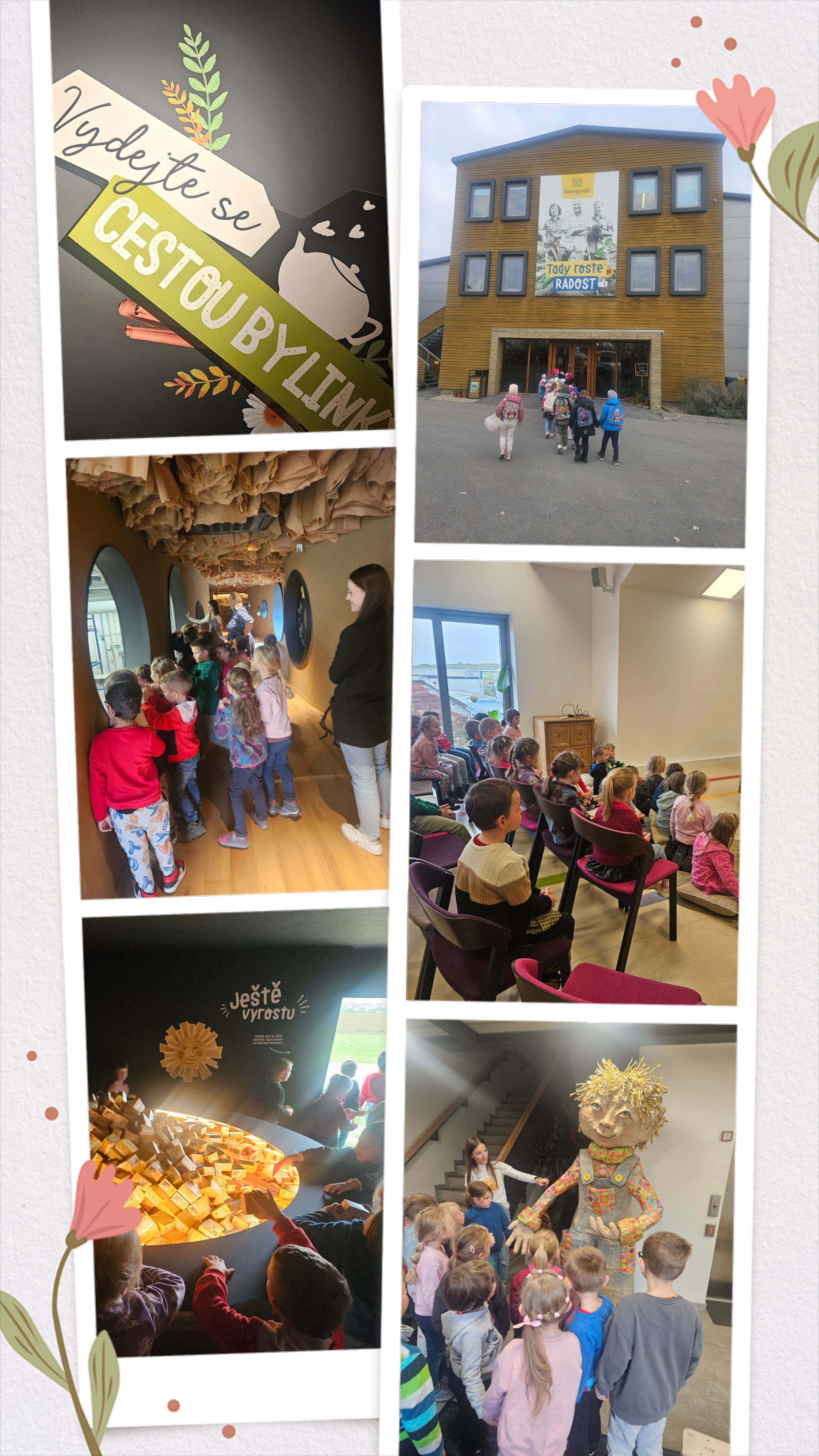 Naši předškoláci se vydali na podzimní výlet do Sonnentoru v Čejkovicích, kde na ně čekal den plný vůní, pohádek a nových zážitků. Po příjezdu děti zhlédly pohádkové představení, které je zavedlo do kouzelného světa bylinek. Poté se vydaly na prohlídku voňavého areálu, která byla spojená s hledáním pěti postav z pohádky. Během prohlídky děti sledovaly práci zaměstnanců přes kulatá okýnka a s nadšením pozorovaly, jak se bylinky suší, třídí a balí. Zajímavým zážitkem byla i prosklená cesta nad halami, odkud mohly děti vidět celý provoz z ptačí perspektivy. Na závěr si každý naplnil svůj vlastní pytlíček bylinkami, které si děti odvezly domů jako voňavou památku na společně prožitý den.Výlet se velmi vydařil – byl plný poznávání, vůní a radosti z objevování.