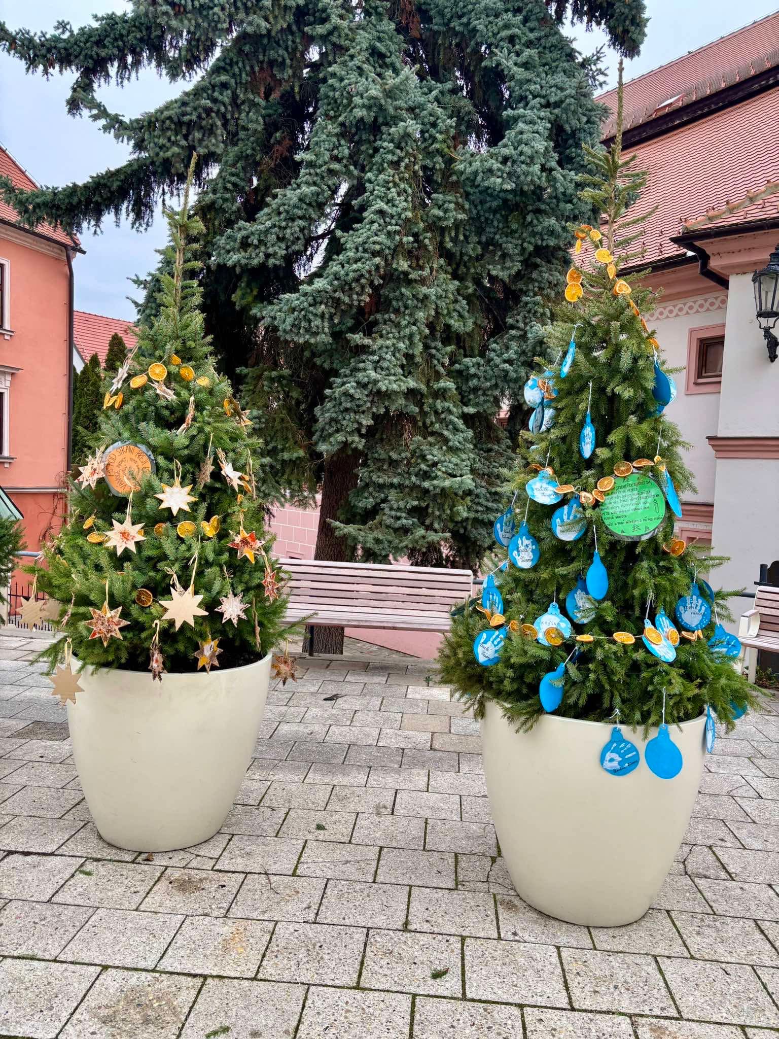 Tento týden jsme měli zase napilno. Přiletěla k nám zpráva, že jsou na Kostelním náměstí připraveny stromečky k ozdobení. Pustili jsme se tedy do výroby ozdob. Po celé školce voněli sušené pomeranče, stříhalo se a zdobilo. Ve středu jsme pak ozdoby sbalili do tašky a vyrazili za našimi stromečky. A jak to celé dopadlo? Posuďte na obrázcích: