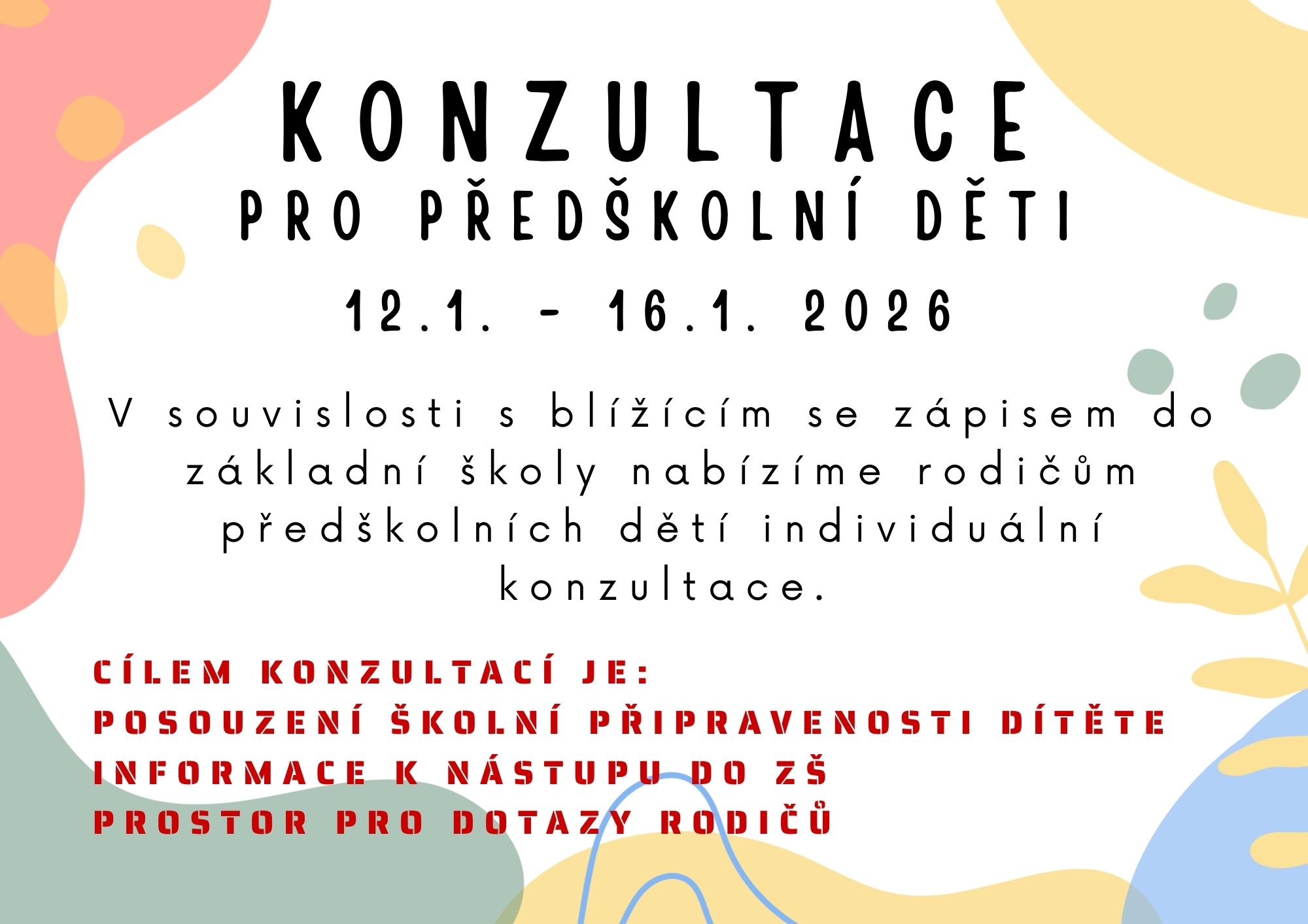 Vážení rodiče, chceme Vás informovat, že v lednu proběhnou individuální konzultace, více informací najdete na plakátku: